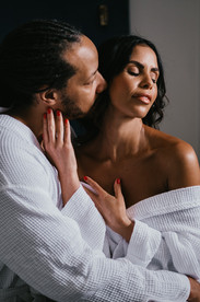I love that some couples help each other get ready. That's exactly what Tony and Shanie did! They started off with some romantic photographs in their hotel room of them both getting cosy in robes followed by adding the final details to their outfits.